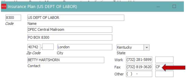 - Within the Fax Ext Field add CF