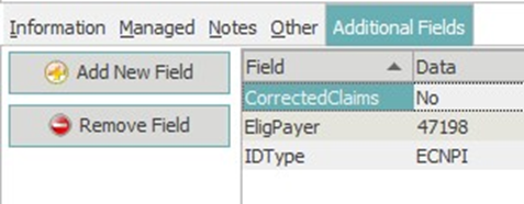 A setup within the Insurance Plan can be set to where all claims submitted to the carrier are submitted with the claim frequency of 1 (Original Claim). Within the Insurance Plan open the Additional Fields tab and select Add New Field. Add the field CorrectedClaims and then place No under the Data column field.