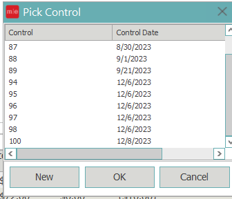 - Users will then pick a control from list for ones already opened or click new to open a new control to post the write off