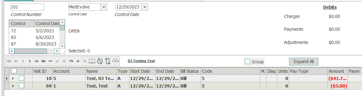 - Visit - Will bring up the specific visit with the balance