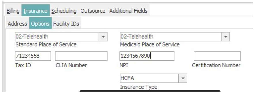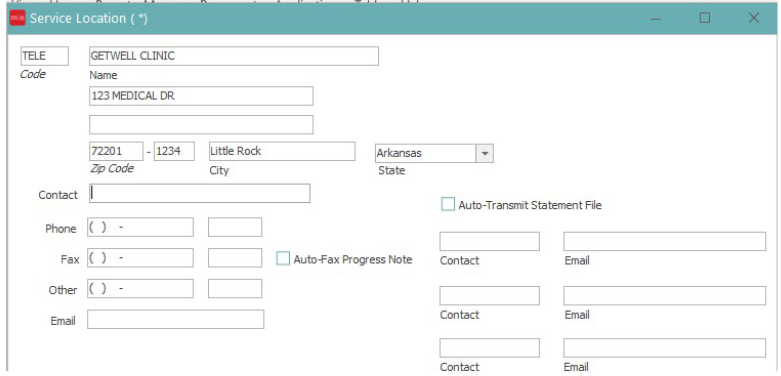 - Go to Tables>Location to add a Service Location for Telehealth claims