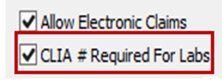 2. In Tables>Insurance/Category, check the box CLIA # Required for Labs