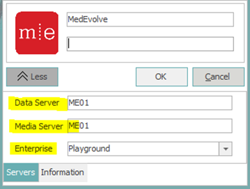 How do I expand the login box for MedEvolve to see which server I am connecting to?