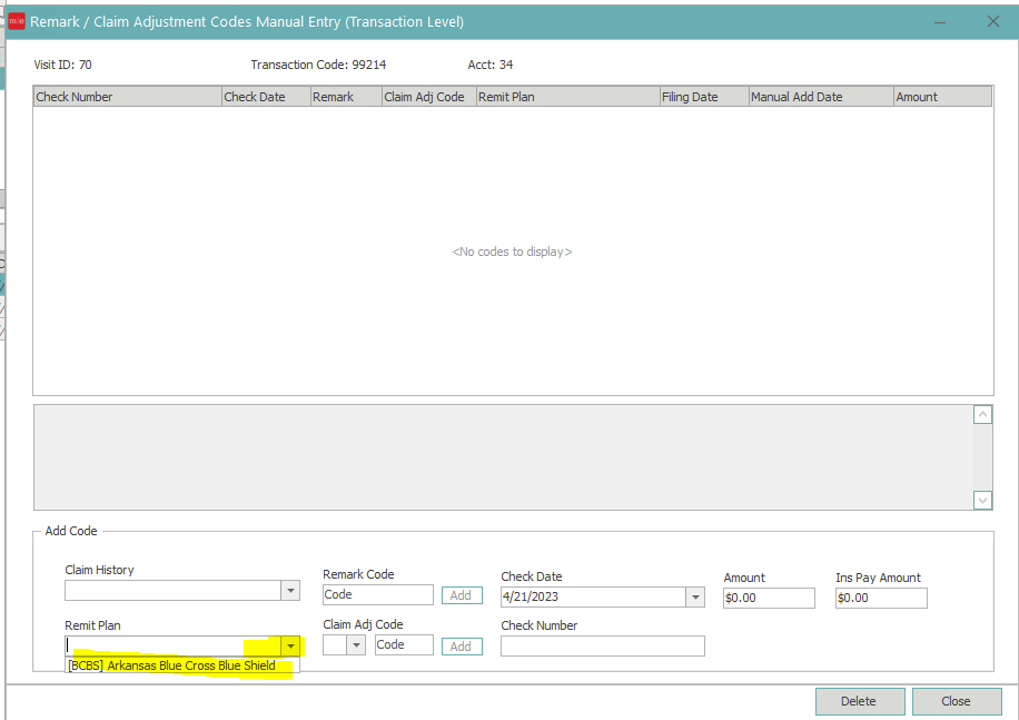 If an ERA is automatically posted the Claim Adjustment and Remark codes will add to the transaction line automatically. If the ERA must be manually posted they must be manually added.