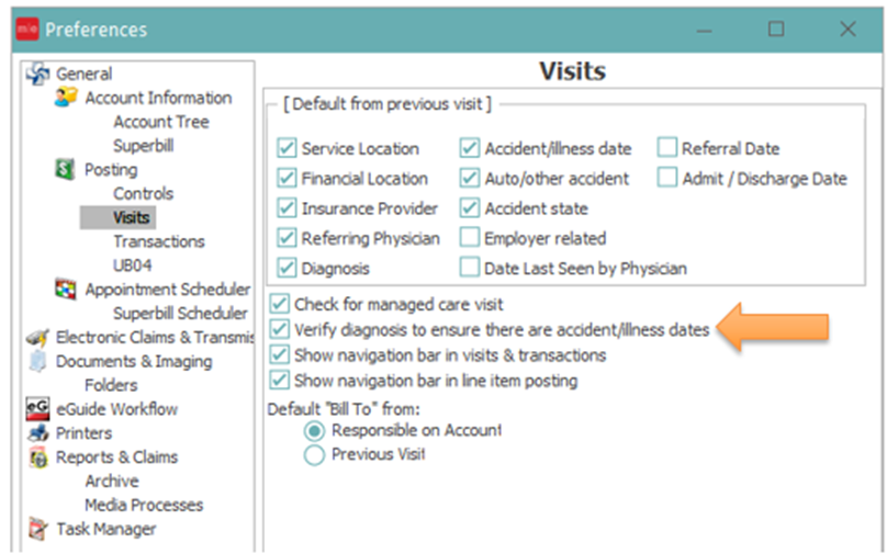 Within User Preferences, there is a setting to Verify Diagnosis to ensure there accident/illness dates.