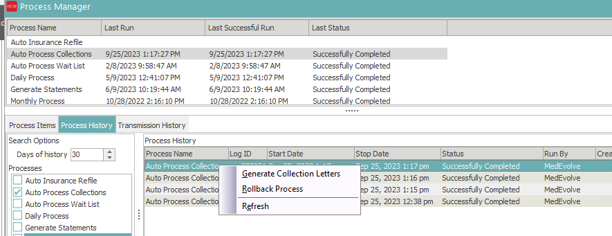 Users can also go to Report-->process Manager and click on Process History tab. Locate the process for collections that was run and right click on the process. Select Generate Collection Letters.