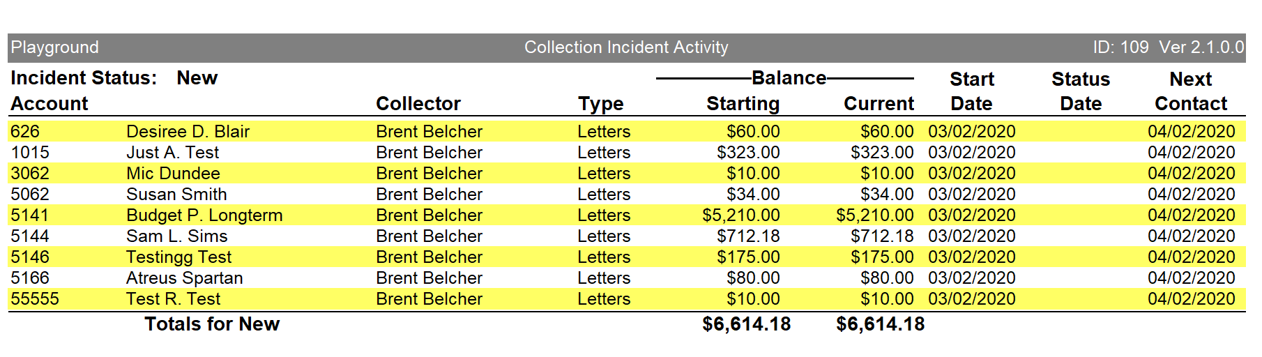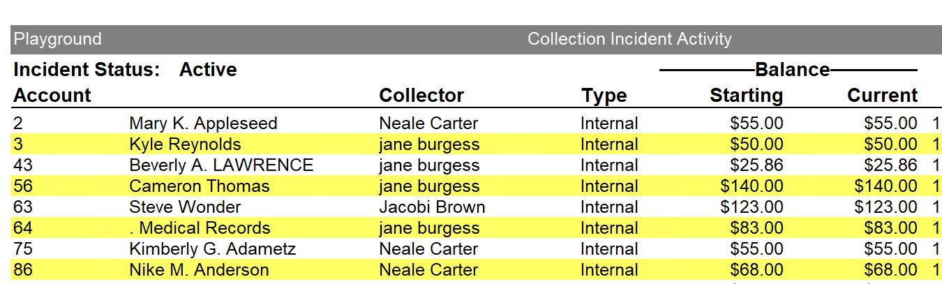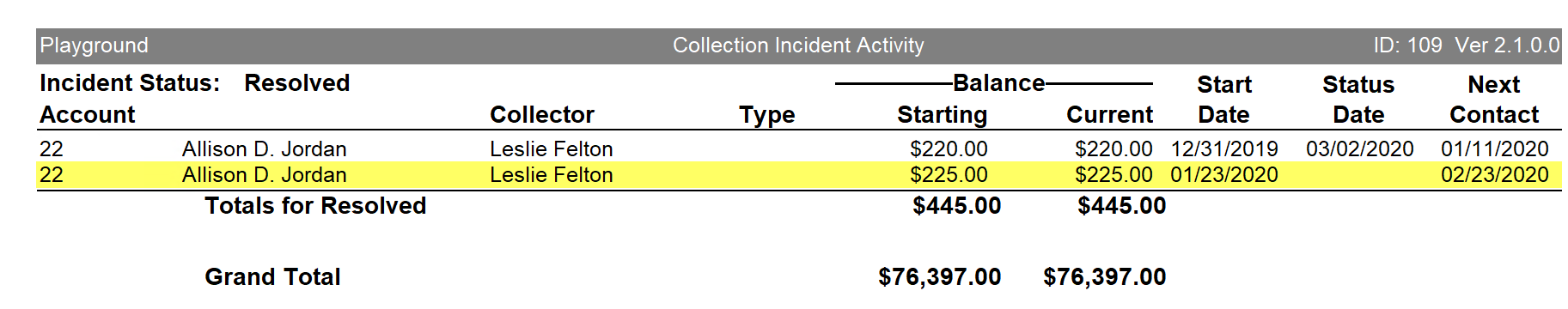 - Collection Incident Activity - Will show you the collections accounts and what status they are in.