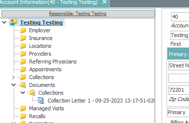 - If there was a letter that printed for that patient it will also have under Documents-->Collections (if attached properly in document templates) the name of the collection letter and date it was created.