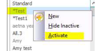These are inactive fee schedules. Any fee schedule names that are bold are currently active.Select the fee schedule you wish to activate and then right click on the name of that fee schedule and select activate fee schedule.