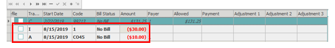 Trans Type = I for Insurance Payment or A for Adjustment.