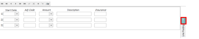 - In the ‘Line Posting’ tab, complete the Pay, Adj1 and Adj2 lines in the middle as needed.