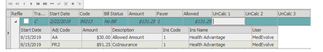 Line 1 corresponds with the UnCalc 1 column in the transaction section at the bottom. (Allowed Amount)