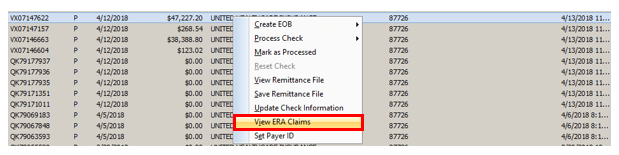 Right-click the ERA, then select View ERA Claims