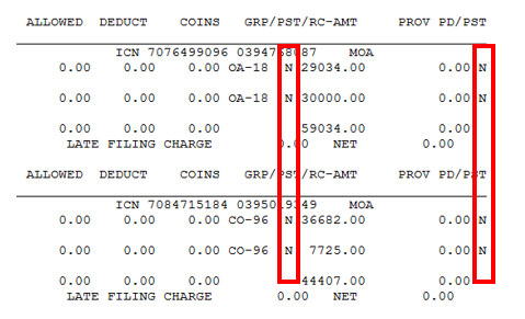 View the payments and adjustment details. Any payments or adjustments with an ‘N’ beside them will not auto post. This will flag the Non-applied option on the ERA.