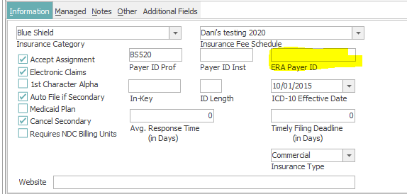 The insurance plan will display, allowing you to add the ERA payer id to the plan.
