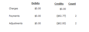 Enter your payments and adjustments to each charge transaction as needed.