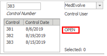 All payments must be posted in an open control. If you have any open controls, they will display in the control box. (See Below)