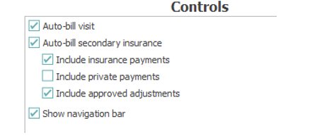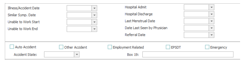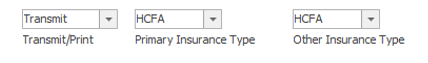 Transmit/Print, Primary Insurance Type and Other Insurance Type are defaulted from the insurance categories associated with the insurance plans on the visit. Never change these options, as that can affect claim filing.