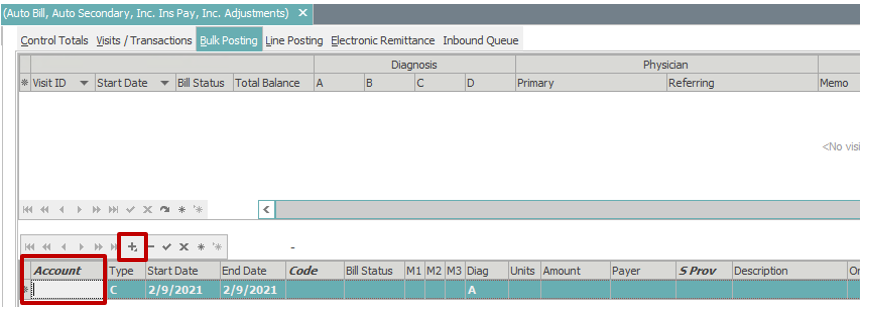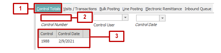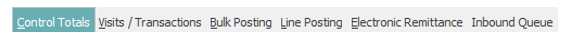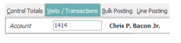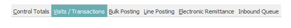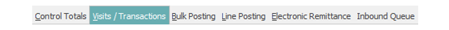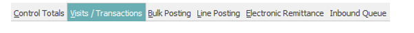 After creating or accessing control, select the Visits/Transactions tab at the top of the Account Posting application.