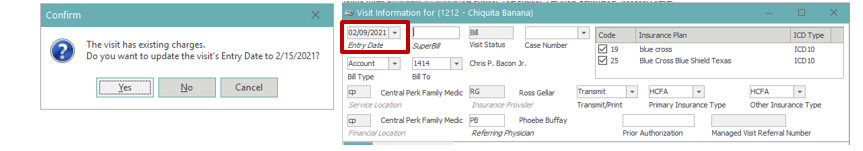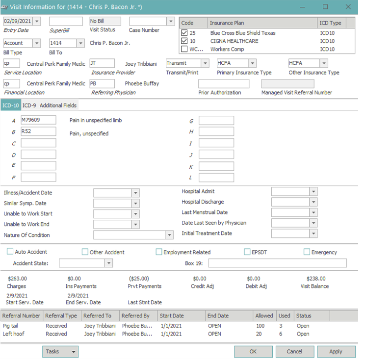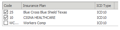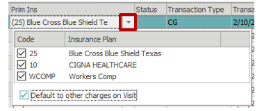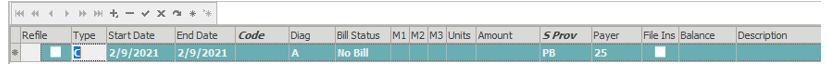 Insurance plans – The active insurance plans for the date of service will appear at the top-right of this window. This is used to disable or enable insurances as needed per visit. Most often used in a workers comp or DME scenario where primary payers should not be billed on the claim, based on the situation.