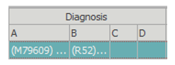 Diagnosis (A,B,C,D) shows up to the first 4 diagnosis codes attached to the visit. Hover over each code to see the description.