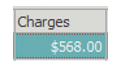 Charges displays the total charge amount of all charges (transaction type C and CC) posted on the visit.