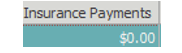 Insurance Payments displays the total amount of insurance payments (transaction type I and II) posted to transactions on the visit.