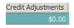 Credit Adjustments displays all credit adjustments (transaction type A) posted to transactions on the visit.