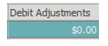 Debit Adjustments displays all debit adjustments (transaction type AA) posted to transactions on the visit.