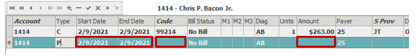 Note: If there is a patient payment, it must be posted immediately following the charge to which it should be applied.