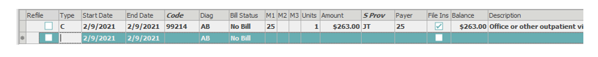 S Prov – Add the Service Provider in the S Prov field. If user preferences are set to default the service provider from the visit, the S Prov will auto-populate as the insurance provider when the transaction is saved.