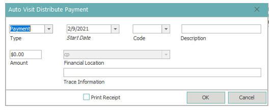 Payer will default the code based on the primary insurance plan enabled on the visit information window. If the patient is responsible, Payer will reflect ‘Account’.