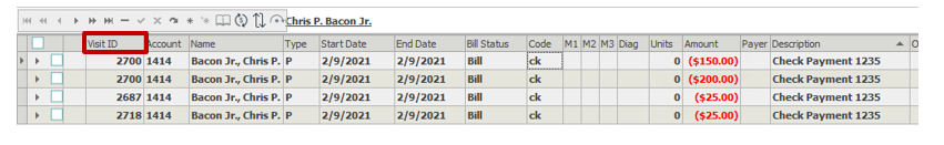 Visit ID displays the unique visit ID assigned when the visit was created. All visits in the same database will have a unique visit id to link ERA’s back to the appropriate visits/transactions.