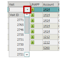 To post to an existing visit, select the appropriate visit from the top Visit section and then proceed to the next section: Adding Charge Transactions.