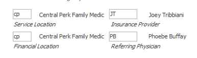 Ins Prov – Displays Insurance Provider code from MedEvolve Resource Table. To change Insurance Provider code, click into field and press F3.
