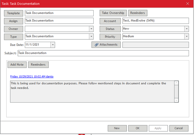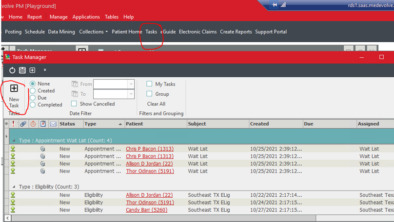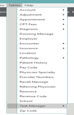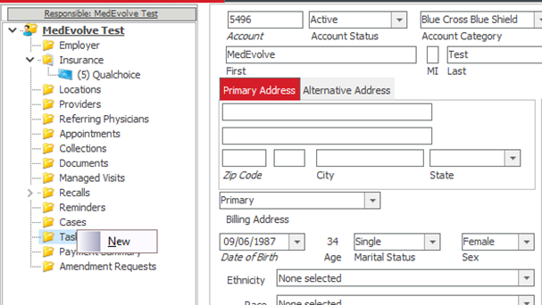 - Go into account information screen and right click on Task Manger in the left hand side of the patient tree. Choose New.