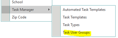 - To create a group go to Tables-->Task Manager-->Task User Groups.