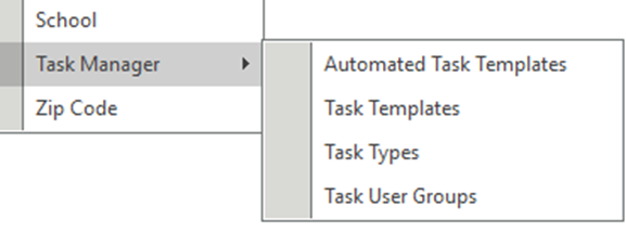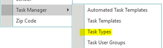 Task Manager is used to assign tasks to either individuals or groups for accounts within the PM system. Users can create some tasks with the automated task manager process or create tasks individually on accounts. If client has Workflow module users can also set up tasks to go between the PM and Workflow applications. In order to use tasks users first must create task user groups, task types, and task templates.