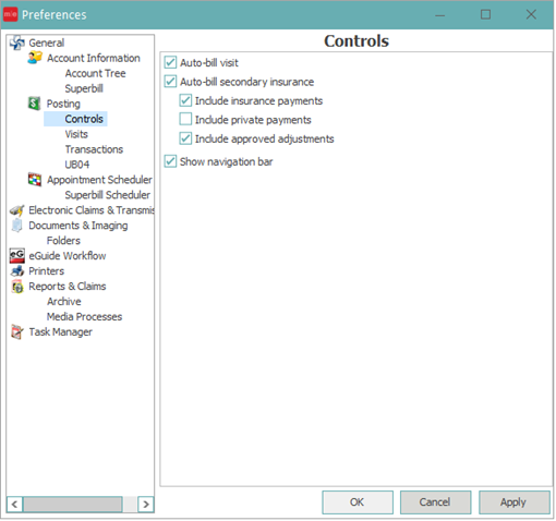 - Auto-Bill Secondary Insurance - Used if the secondary claims should be billed when the control is closed. Always select this option