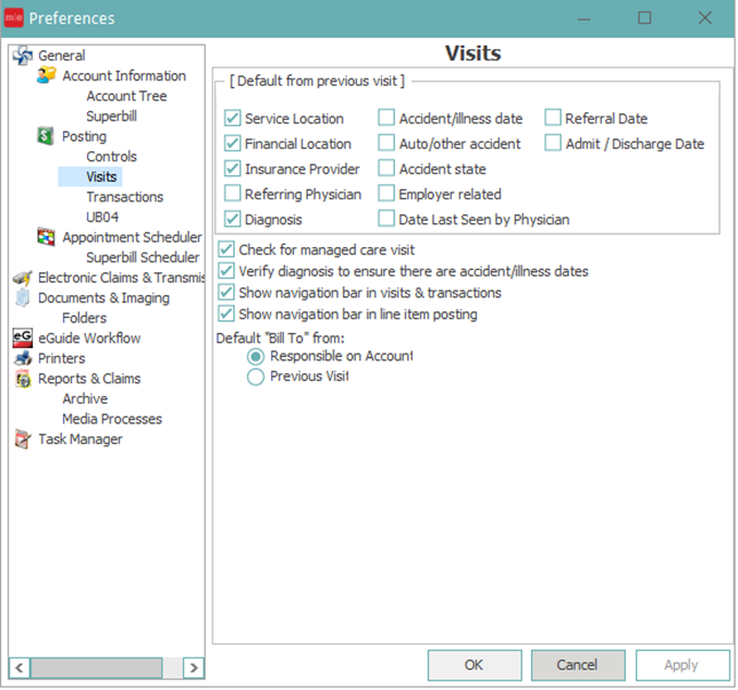 - Default service provider from visit - If selected the service provider will default from the Insurance Provider on the visit