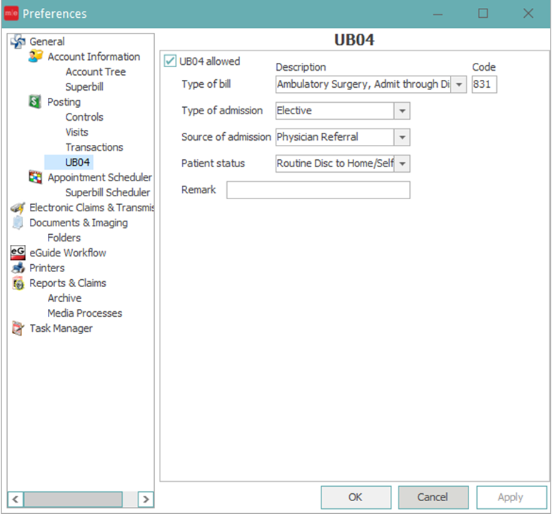 - If the UB04 allowed is not selected the user will not be able to choose this option in posting.