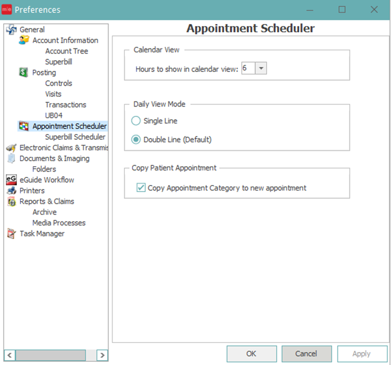 - Double Line (Default) - Selected if each patient should have a double line for each appointment