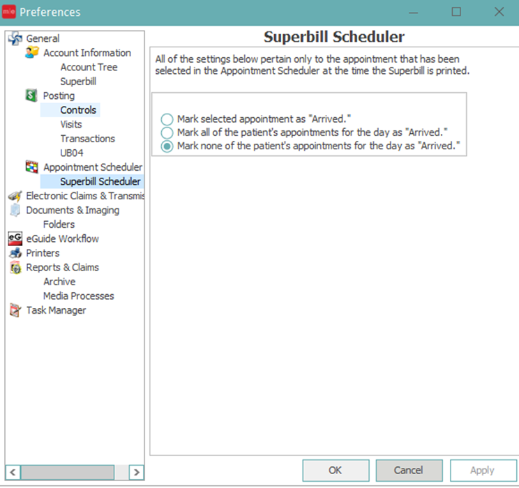- Print a Superbill for each appointment today - Select this option if you want to print a superbill for each appointment that is scheduled for the day