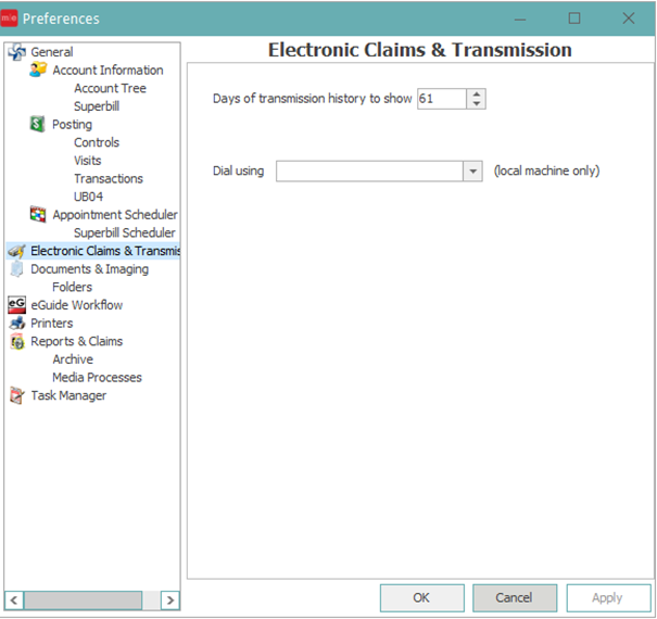 - Days of transmission history to show - Select how many files should show in the transmission history folder
