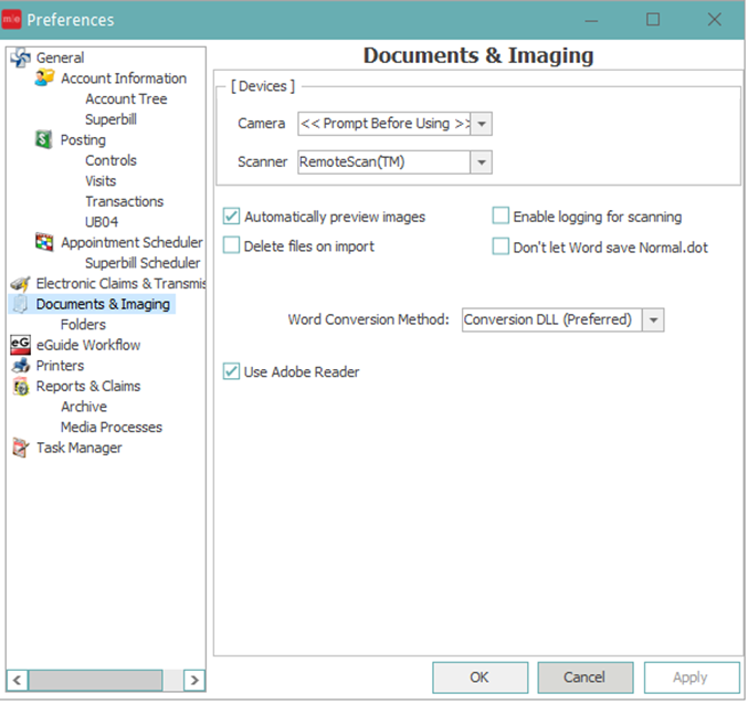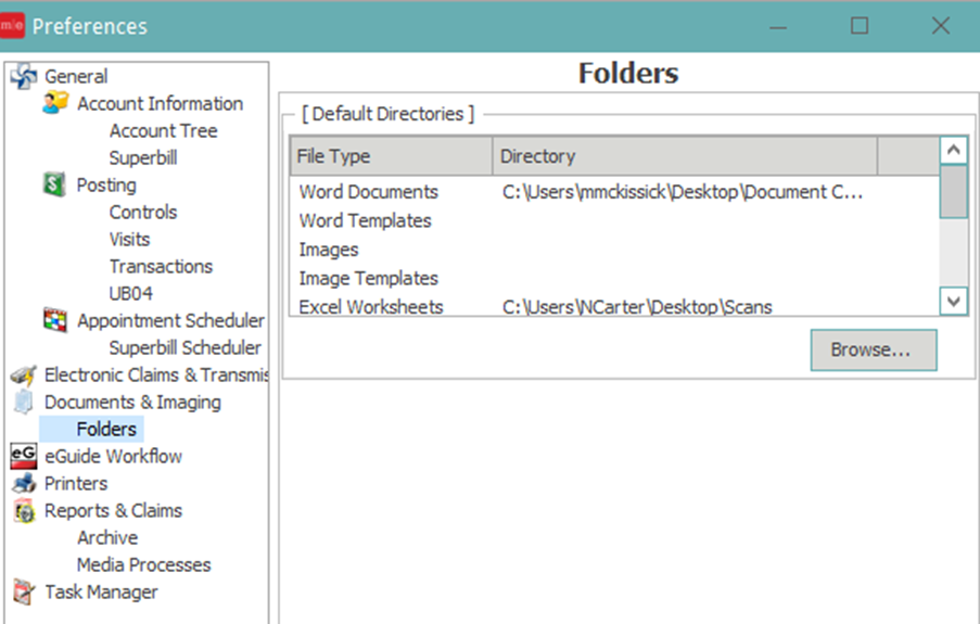 - Used to set default directory for each file type when importing documents. If importing you can set a default to where documents will save