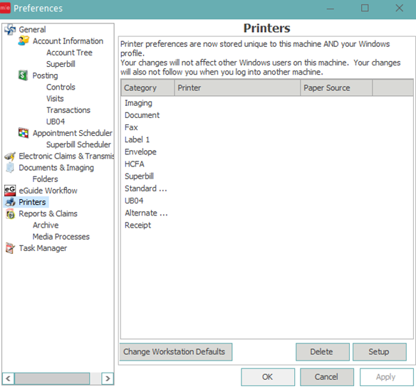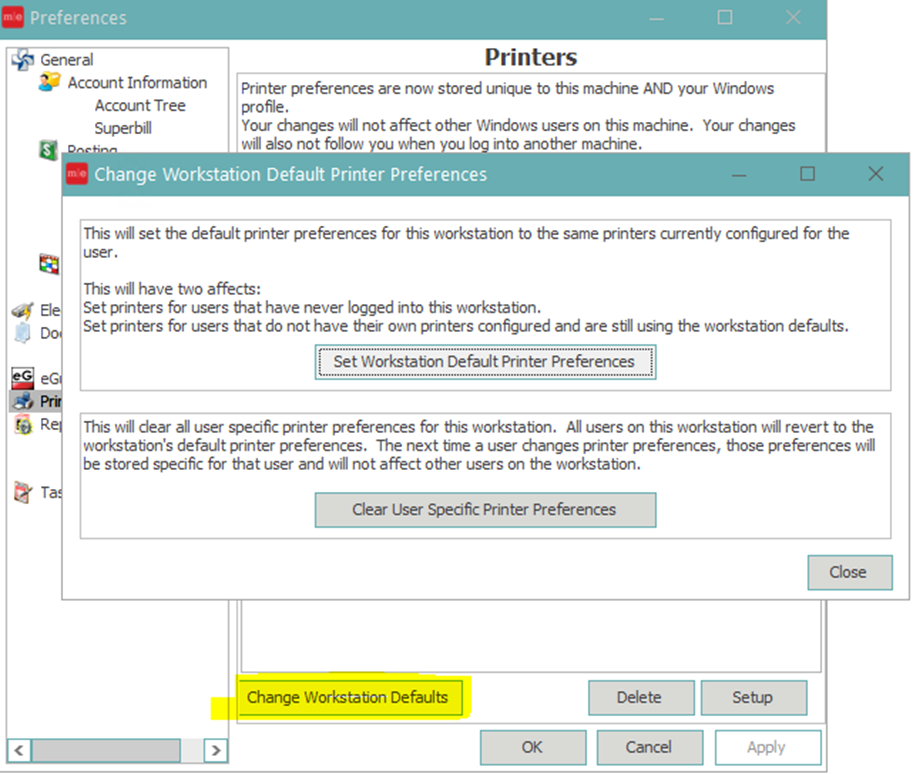 - Set workstation default printer preferences - This will set the default printer preferences for the workstation that is currently being used by the following