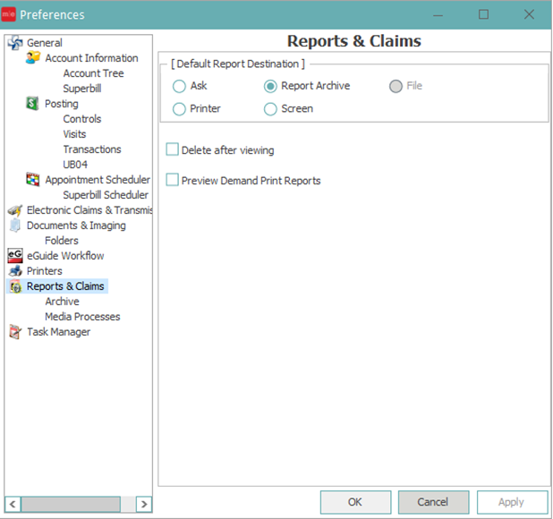 - Default Report Destination - When processing a report where does the user typically want the report to be processed to