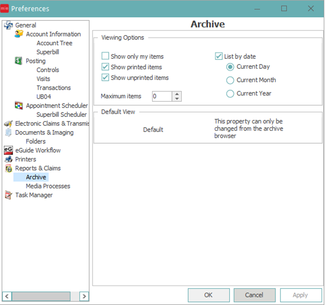 - Maximum Items - If set to a number other than zero will only show the number of maximum items in report archive starting with most recent items.