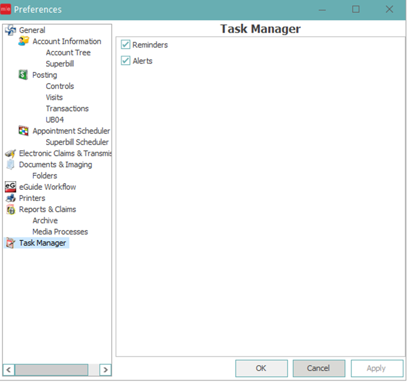- Alerts - If selected will show alerts for tasks in Task Manager