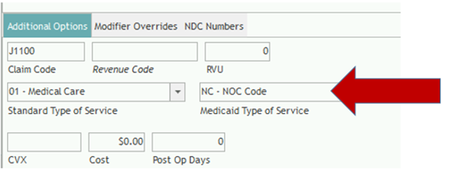 Only codes that are considered "Non Classified Codes" are allowed to have the description of service included on the claim based on the valid NOC code link: